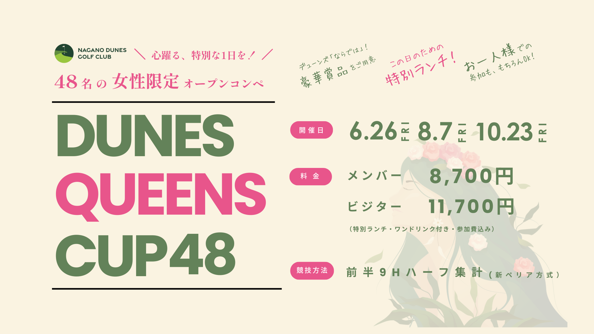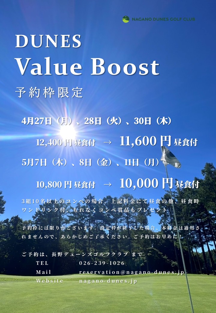 7,045ヤード コースレート 72.6。美しい造形美を見せるコースはまさにまさに「Dunes(砂丘)」のよう。白樺や唐松の林帯でセパレートされた18ホール